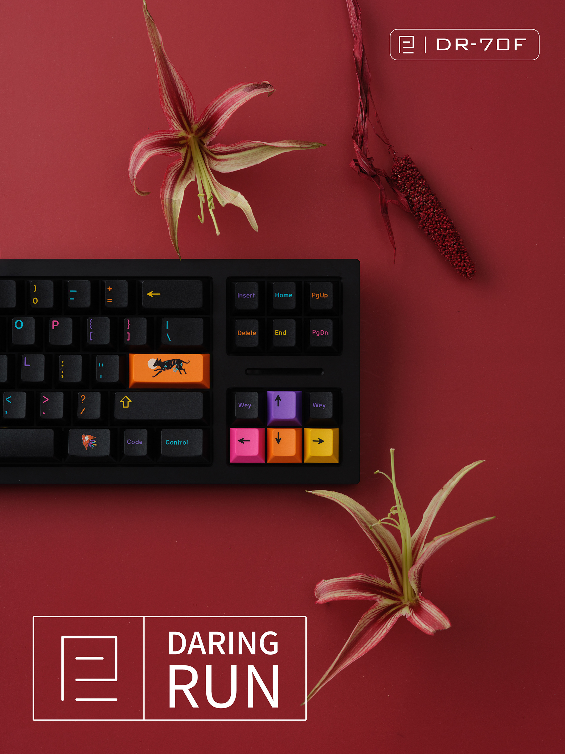Layout:70%+5%, arrow area and function area can be rotated and switched,one keyboard two layouts