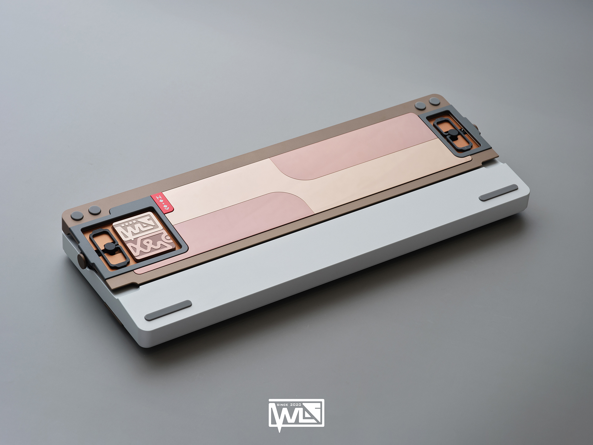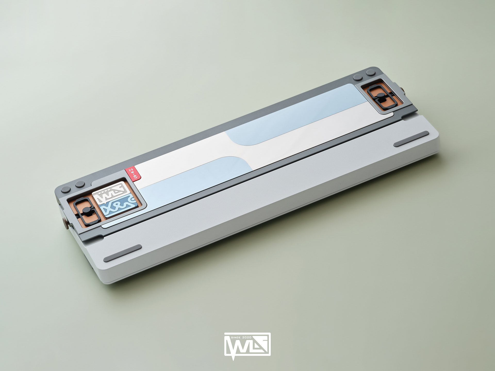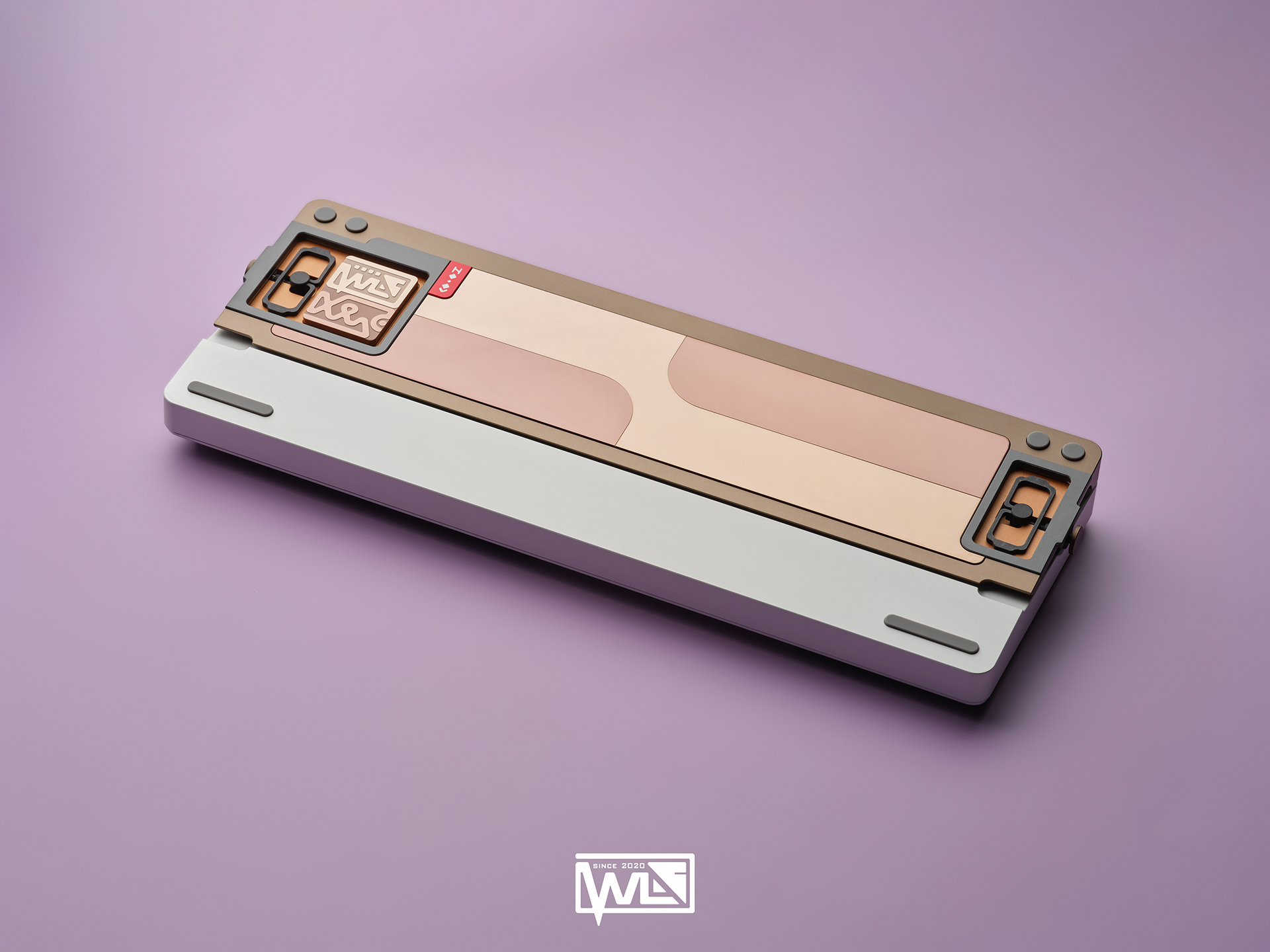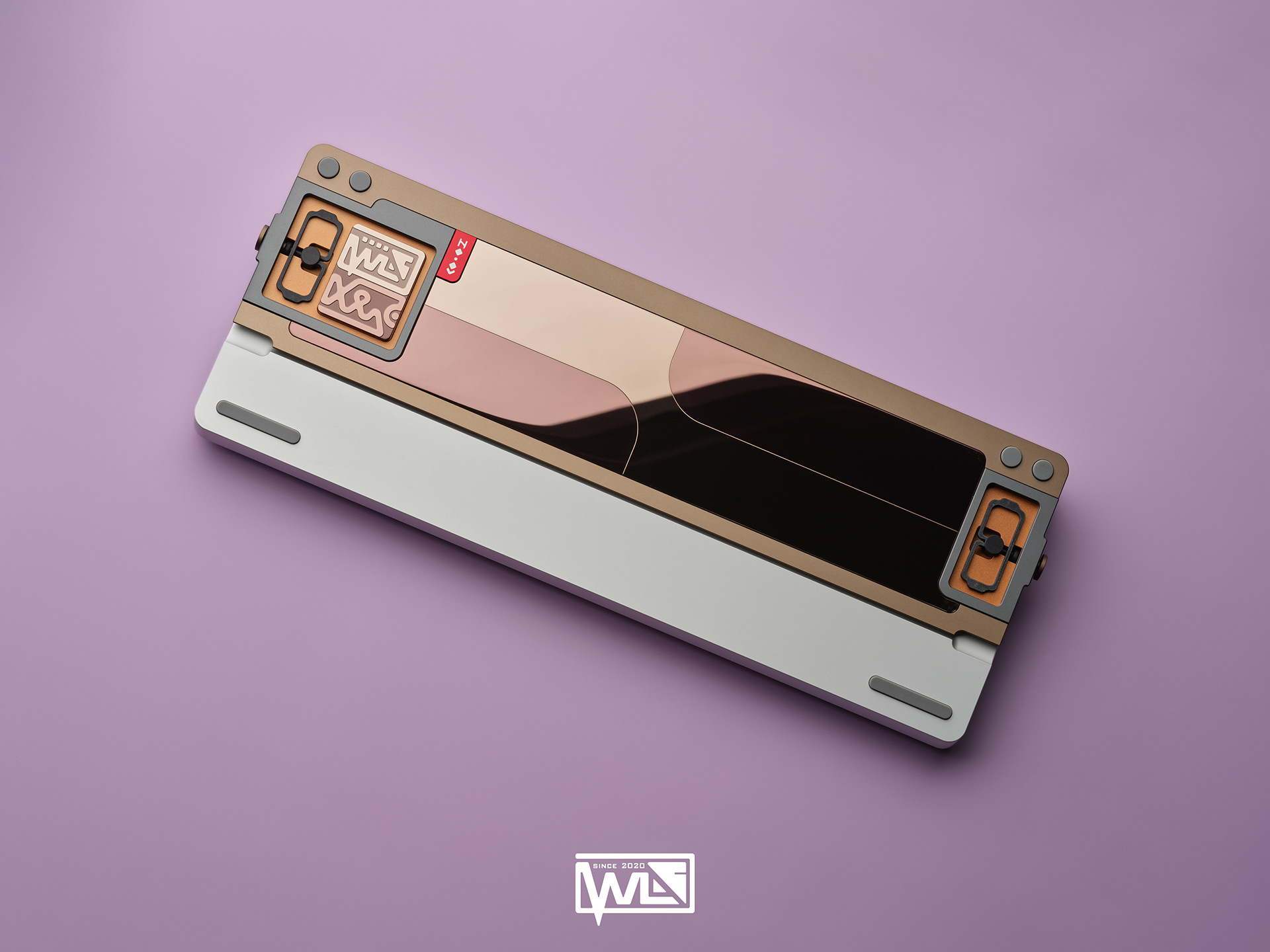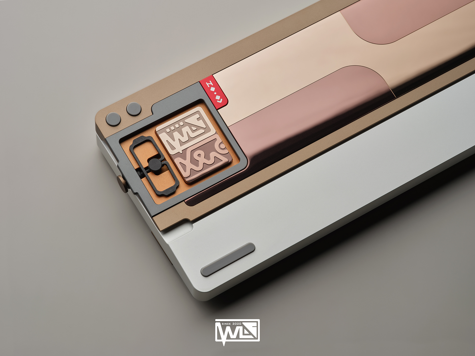 The Vento 80 comes with both internal and external weights. Depending on the color option, its 1kg internal weight is either red copper or brass, providing a solid foundation for the sound profile. The external weight is dual-toned and crafted from stainless steel. This marks our first attempt at combining two colors on a single material. The side badge also utilizes this technique, combining two colors and showcasing both glossy and matte textures.