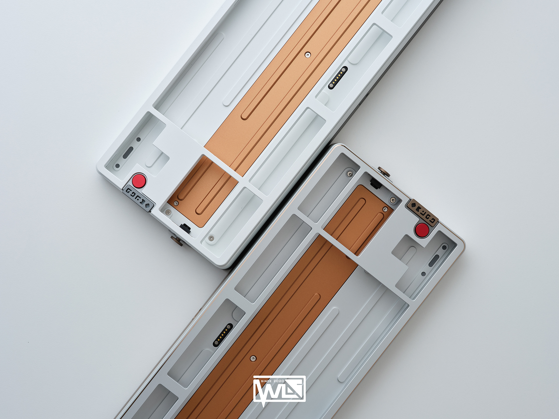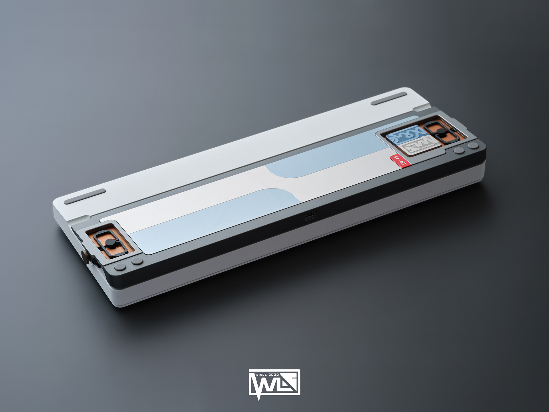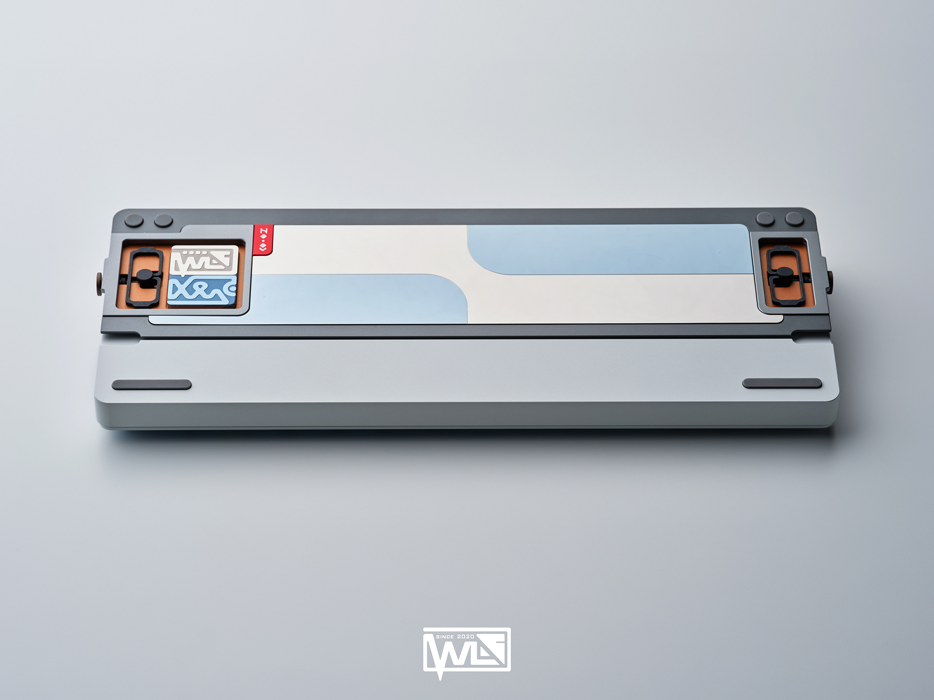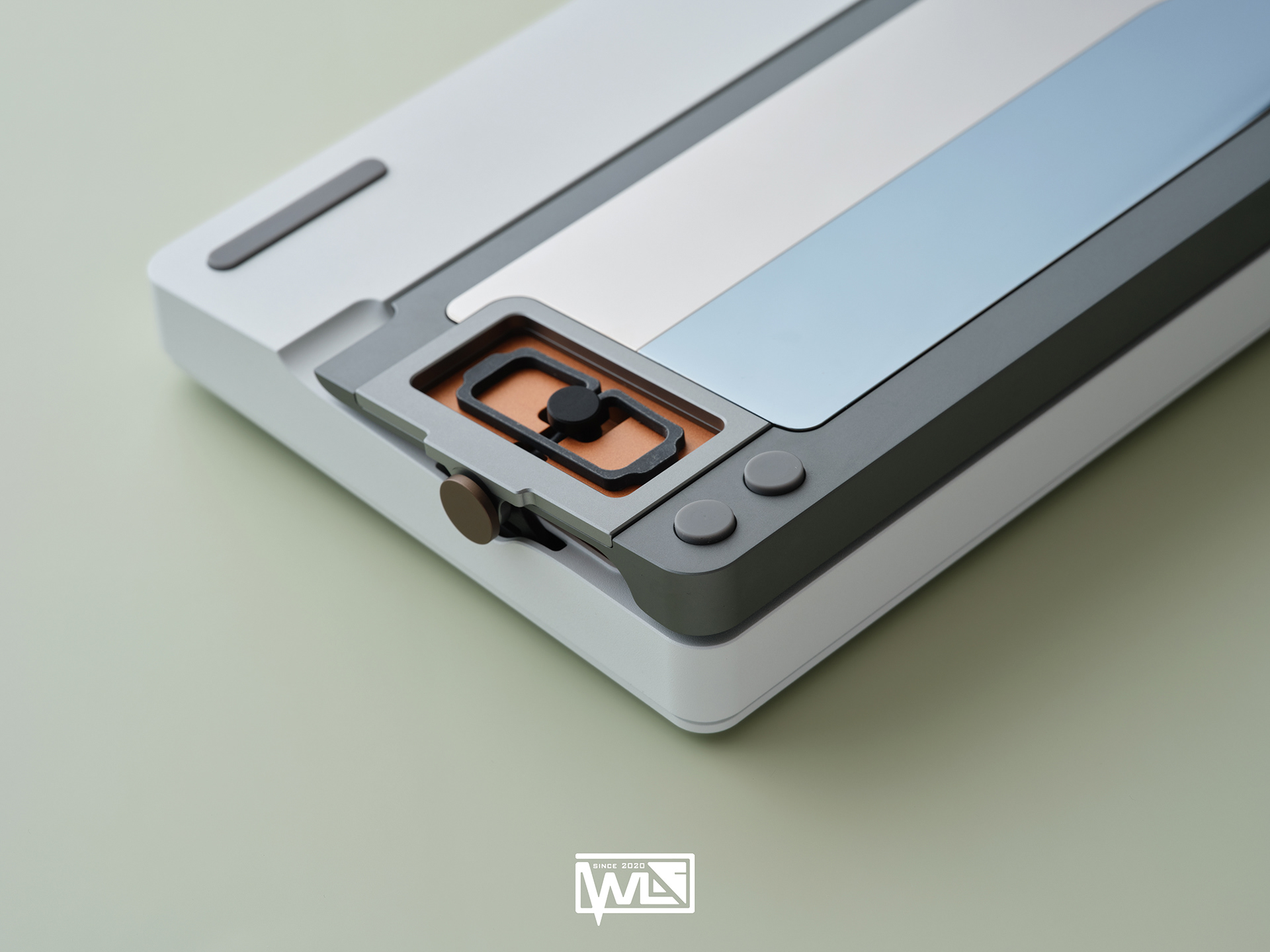 The Vento 80 comes with both internal and external weights. Depending on the color option, its 1kg internal weight is either red copper or brass, providing a solid foundation for the sound profile. The external weight is dual-toned and crafted from stainless steel. This marks our first attempt at combining two colors on a single material. The side badge also utilizes this technique, combining two colors and showcasing both glossy and matte textures.