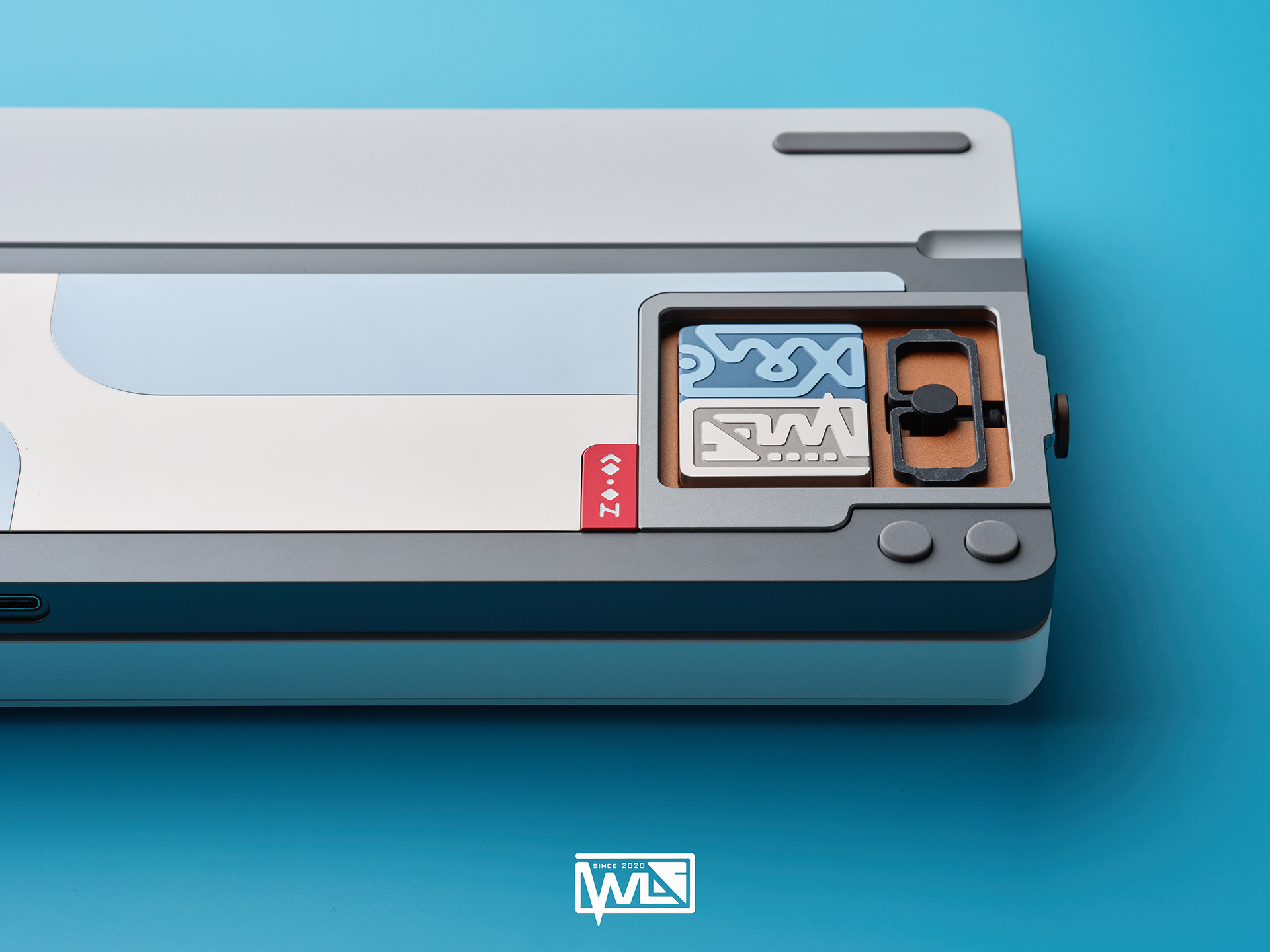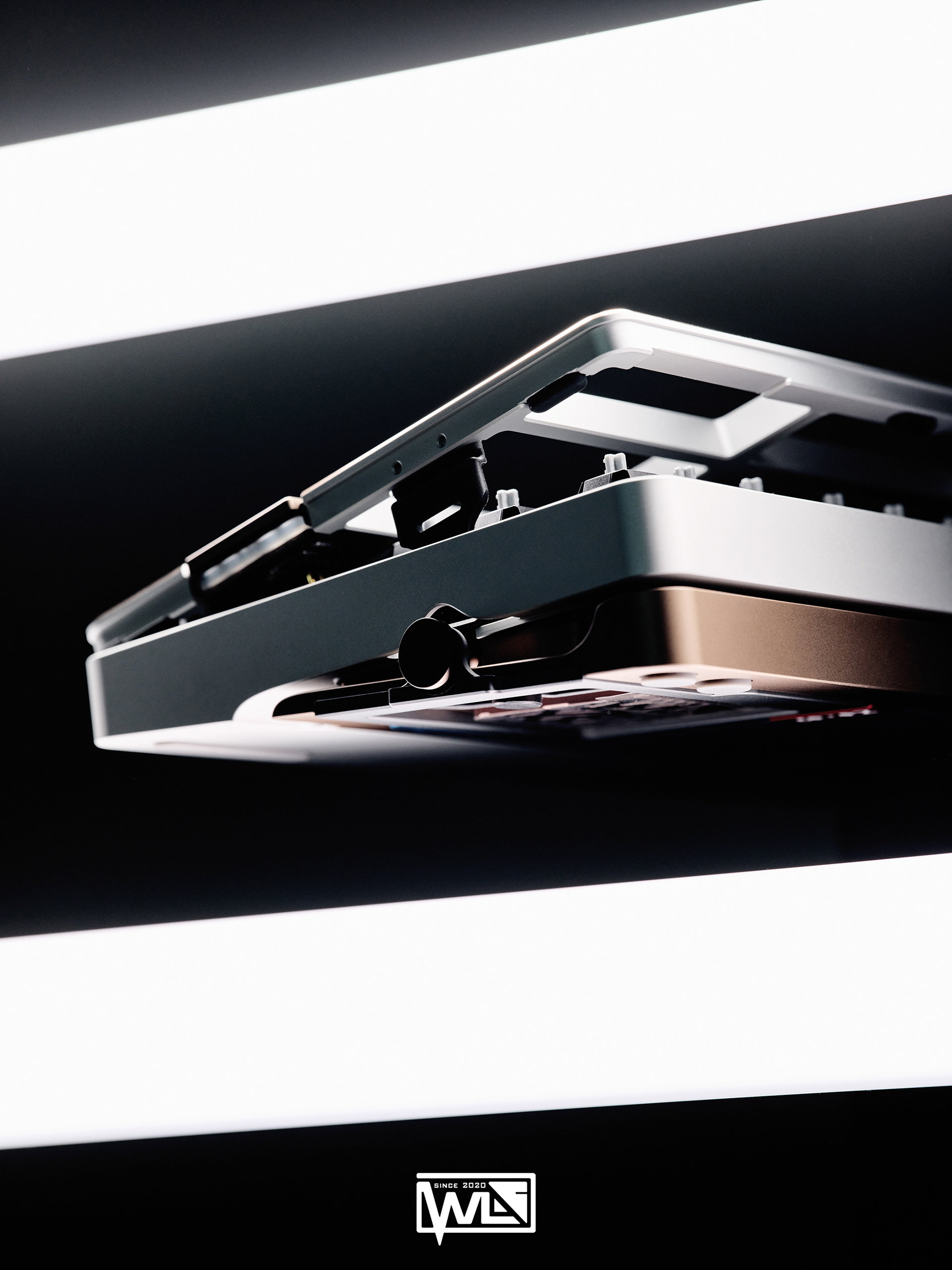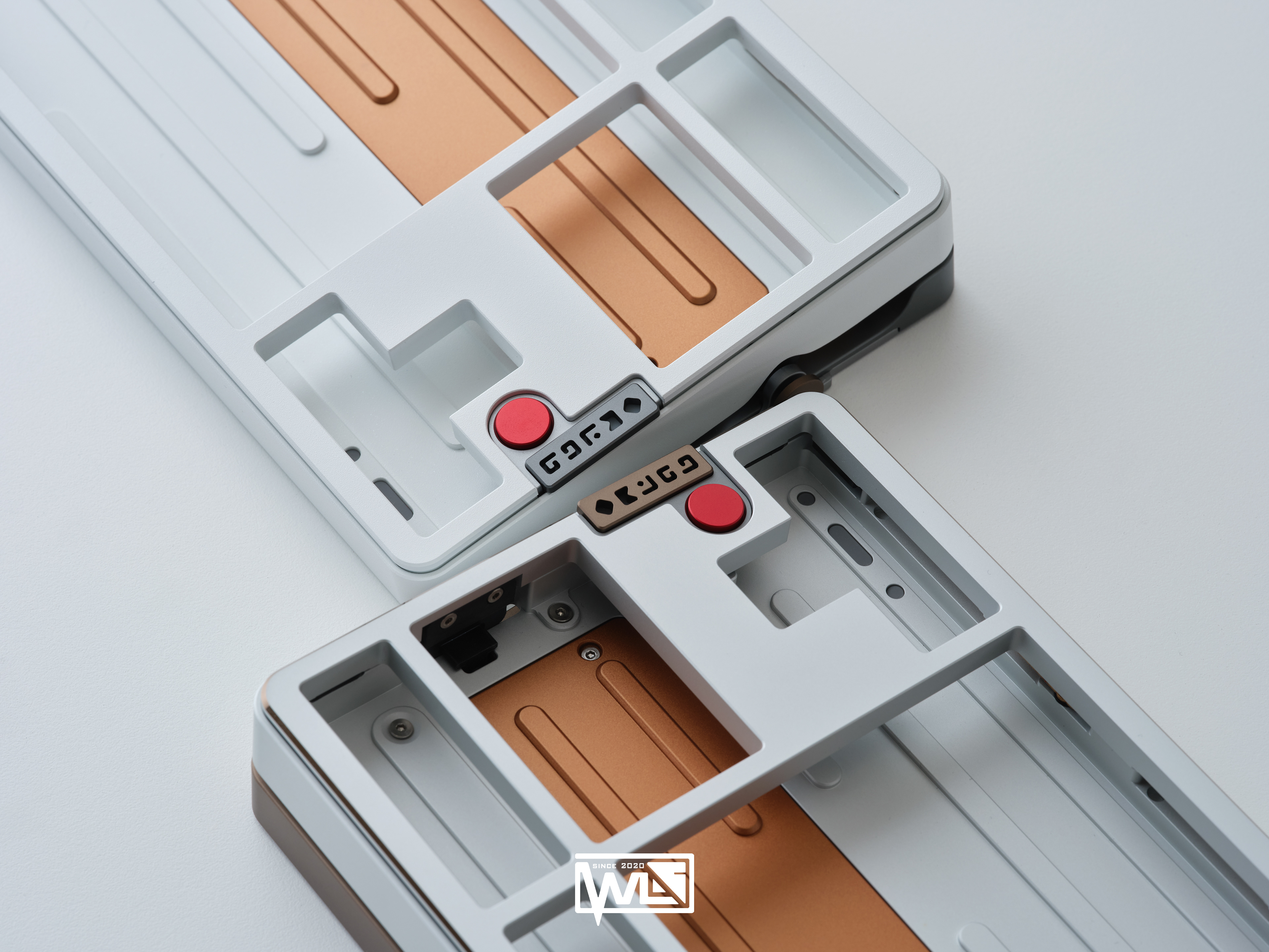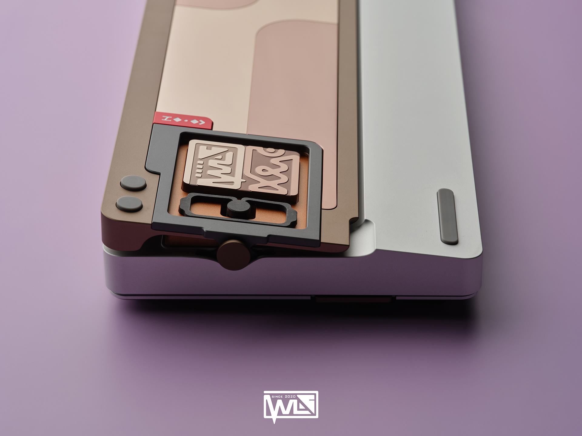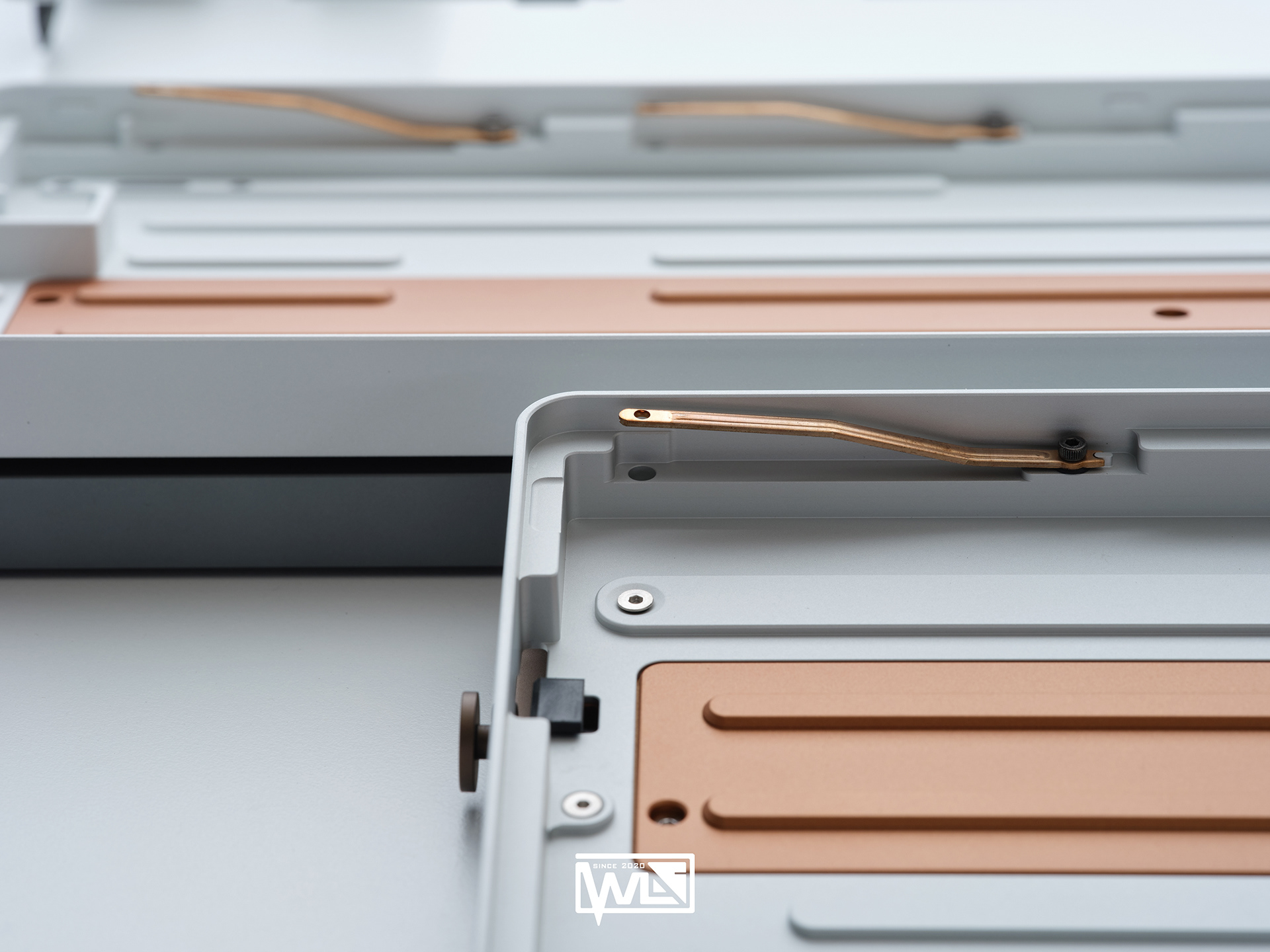 The Vento 80 comes with both internal and external weights. Depending on the color option, its 1kg internal weight is either red copper or brass, providing a solid foundation for the sound profile. The external weight is dual-toned and crafted from stainless steel. This marks our first attempt at combining two colors on a single material. The side badge also utilizes this technique, combining two colors and showcasing both glossy and matte textures.