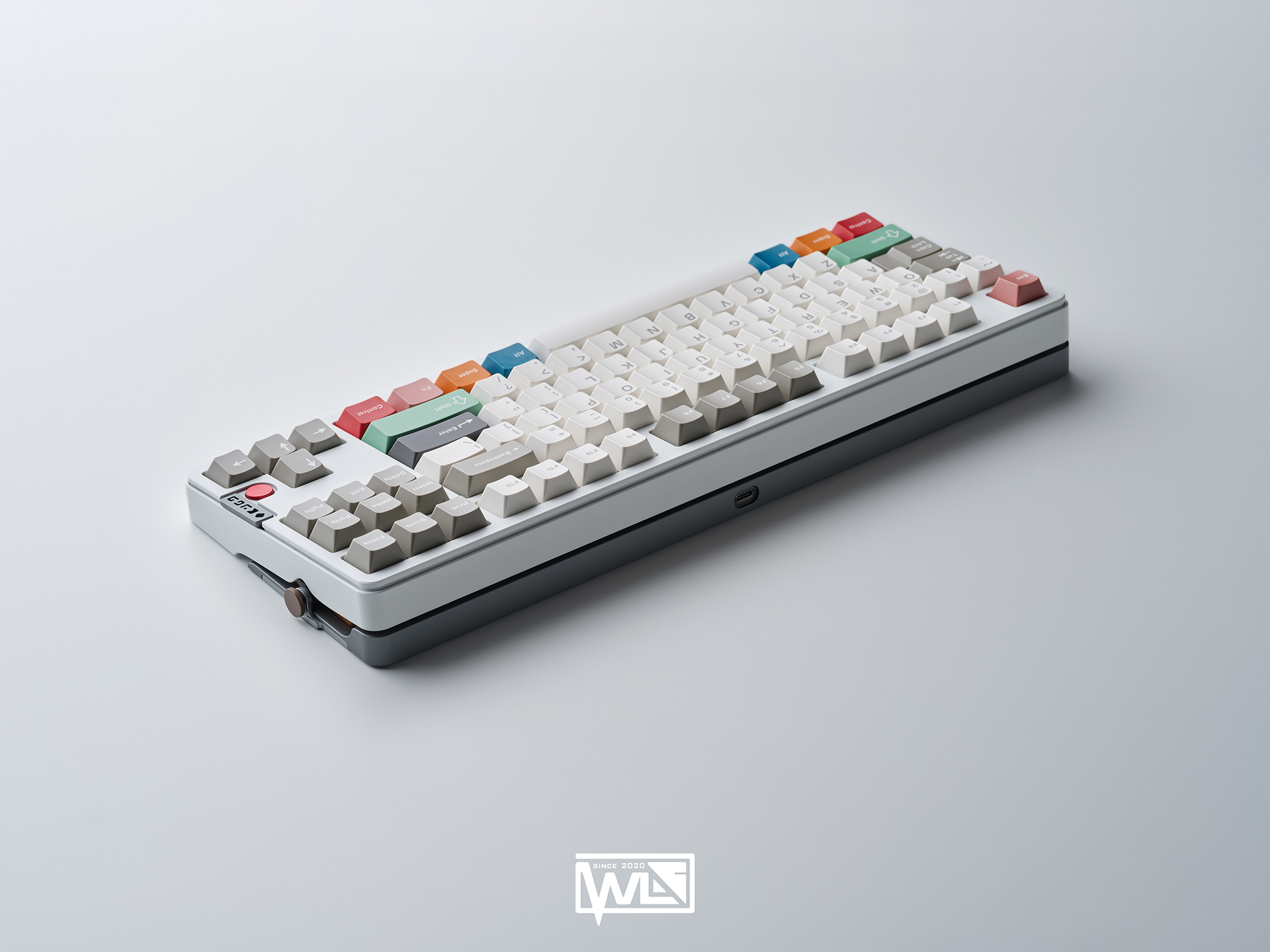 The Vento 80 maintains the design aesthetic of the Jelly Evolv. Its bottom case is attached to the top case by a 1cm thick internal weight. This design gives the entire keyboard a floating appearance and makes the side profile more dynamic.